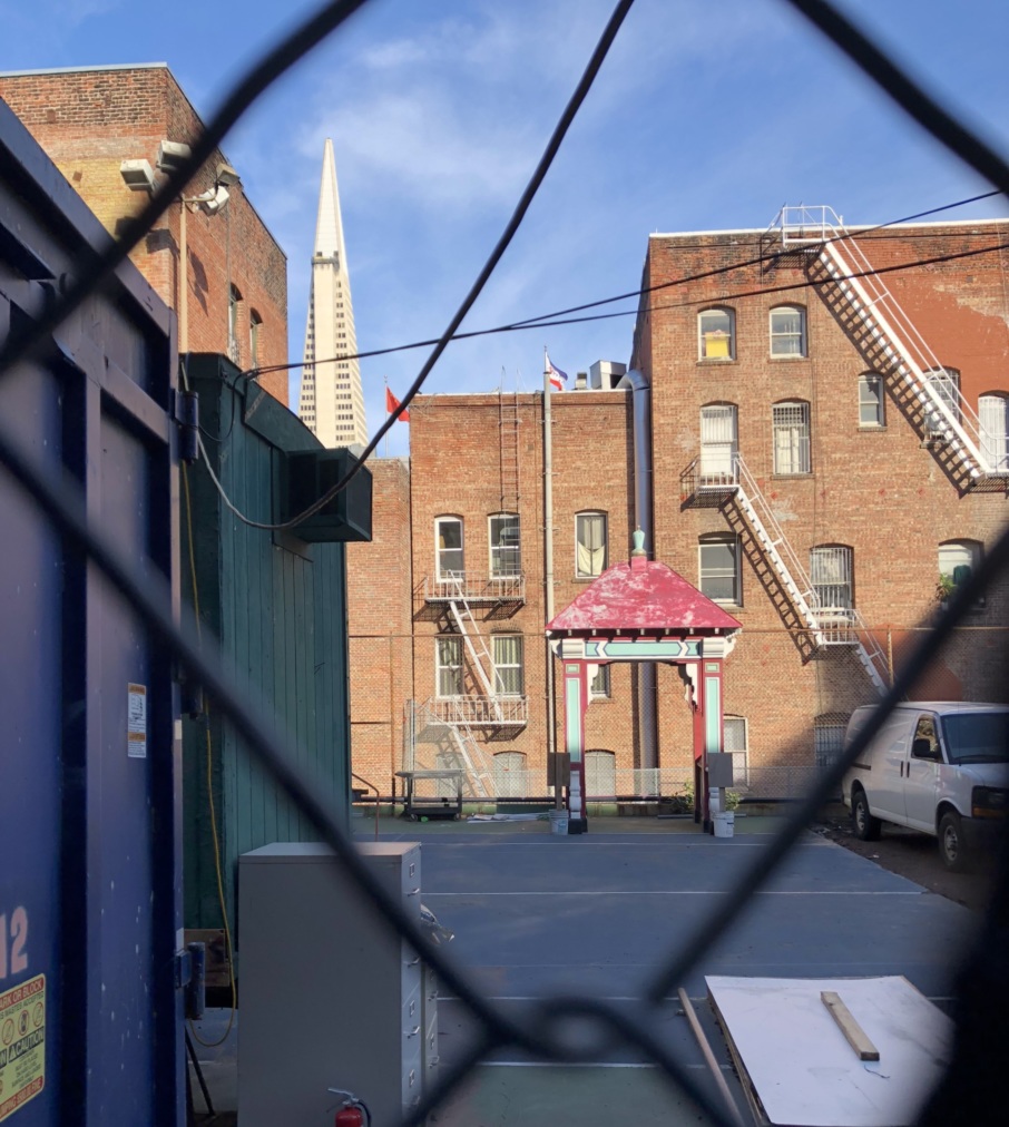 Hang Ah has never taken advantage of outside eating due to the restaurant's odd placement in an alley , and next to a construction project that has just begun to wind down. During the summer months, tourists trickled in, snagging Hang Ah's famed BBQ pork buns and house-made chili oil. Others were unaware it existed, a little shop with the words â1st Dim Sum House in the United States of Americaâ scribbled along the brick wall. Constanza Hevia H. / Chronicle Contributor